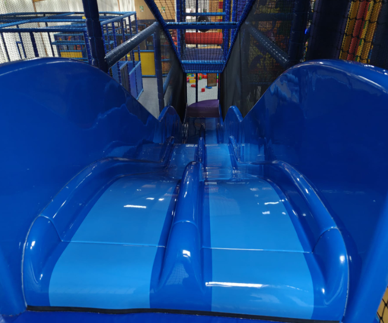 Die Spiralrutsche und die Wellenrutsche im Indoorspielplatz KidsKing bieten rasanten Rutschspaß für Kinder jeden Alters.